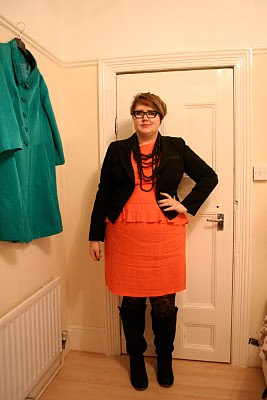 I scored this jersey dress with an assymetrical hem from River Island over the summer. It's a size 18 but super generous and has a comfortable body con fit on my frame. It's dressy and definitely a statement dress, but it's also comfortable and versatile. I wanted to wear some combat boots with this, but I seem to have left them somewhere, so my brogues had to suffice. I would love a pair of black wedges to team with this, but no doubt the hunt for a pair that aren't as uncomfortable as heels are for me will prove too much of a challenge.
